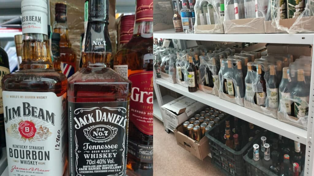 Вин и шампанского — почти три сотни: от «Советского» и «Santo Stefano» до «Белой лозы» и «Жар-Жар». Отдельный интерес вызывает элитная часть партии — виски Jack Daniel’s, Jameson, Jim Beam, ром Captain Morgan и ликер Jägermeister. Всего таких бутылок — 19.